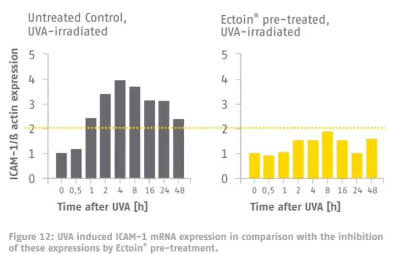 Дополнително, екдолинот може да ја спречи верижната реакција предизвикана од зрачење со УВА (ултравиолетово со долг бран) и да ја спречи мутацијата на мт-ДНК индуцирана од УВА.