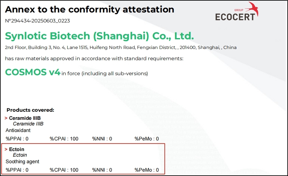 Неодамна, Yikeduoyin произведен од Шангај Јунлуо го доби природниот сертификат EU COSMOS доделен од ECOCERT во Франција.