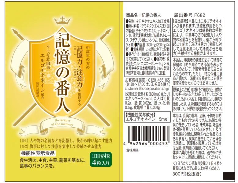 Додатокот на ерготионеин лансиран од јапонската корпорација LS е производ дизајниран да го реши падот на меморијата кај средовечните и постарите луѓе.