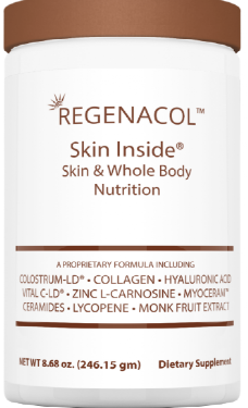 Регенакол оралниот додаток за убавина содржи говедски колострум, витамин Ц, колагенски пептиди од говеда и ликопен. Ликопенот може да го зголеми нивото на проколаген (претходник на колаген), кој помага да се намали стареењето на кожата и да се заштити кожата од оштетувањето предизвикано од ултравиолетовите зраци.